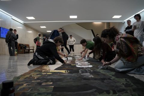 Decenas de manos trabajaban la pasada madrugada al unísono en la facultad de Bellas Artes de la Universidad Complutense para elaborar la cartelería con la que este miércoles y el