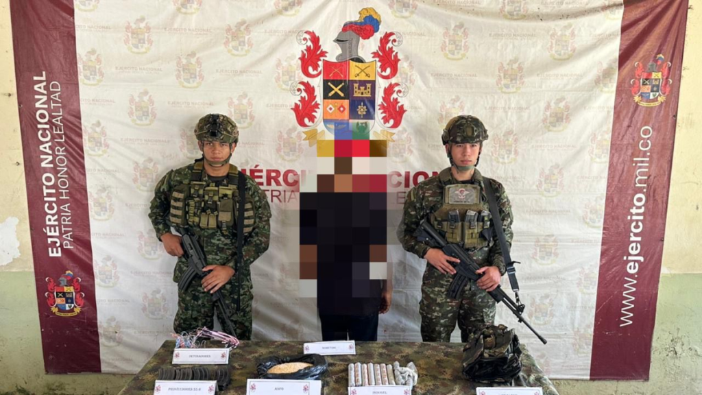 En el nordeste antioqueño, unidades del Ejército Nacional adelantaron una operación dirigida contra estructuras del ‘clan del Golfo’ con presencia en zonas rurales de El Bagre y Segovia. La acción se enfocó en afectar las capacidades de las subestructuras Uldar Cardona Rueda y Manuel Alexánder Ariza, señaladas por las autoridades como parte de este grupo armado organizado.Durante el desarrollo de la operación, tropas del Batallón de Selva N.° 57, adscritas a la Décima Primera Brigada, actuaron de manera coordinada con la Policía Nacional. Como resultado de estas acciones se produjo la captura de un presunto integrante del ‘clan del Golfo’, la localización de un depósito ilegal con material explosivo y la entrega voluntaria de un hombre que también haría parte de esta organización.Las labores se ejecutaron en una zona limítrofe entre El Bagre y Segovia, donde los uniformados adelantaron tareas de inteligencia y reconocimiento previas a la intervención. Estas actividades permitieron identificar movimientos y puntos de interés asociados a la estructura armada en ese sector del departamento.Otro de los capturados. Foto:CortesíaEl hombre capturado fue identificado con los alias de Starlink o Panda y, según la información oficial, pertenecería a la Subestructura Uldar Cardona Rueda. De acuerdo con las autoridades, era requerido mediante orden judicial por el delito de fabricación, tráfico, porte o tenencia de armas de fuego, accesorios, partes o municiones.En el mismo operativo se reportó el hallazgo de un depósito con material bélico. En el lugar fueron encontrados ocho detonadores eléctricos, diez barras de explosivo indugel, un kilo de Anfo, cuatro proveedores calibre 5.59 milímetros y un chaleco multipropósito. Esta situación derivó en el sometimiento a la justicia de un presunto integrante de la Subestructura Manuel Alexánder Ariza que se encontraba en el sitio. LEA TAMBIÉN Las autoridades señalaron que este tipo de resultados impacta las capacidades operativas de las estructuras armadas ilegales, en particular aquellas relacionadas con el uso de explosivos. Desde el componente militar se informó que las operaciones se mantienen como parte de las acciones orientadas a enfrentar a los grupos armados organizados que operan en Antioquia y a intervenir los factores que inciden en la seguridad de la región.Redacción JusticiaJusticia@eltiempo.comMás noticias de Justicia: